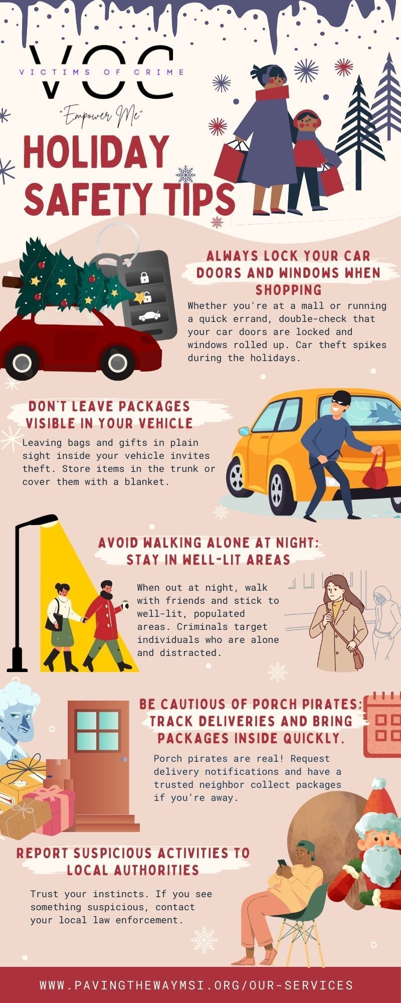 - Try to travel with others and walk in populated and well-lit areas.